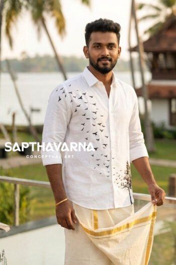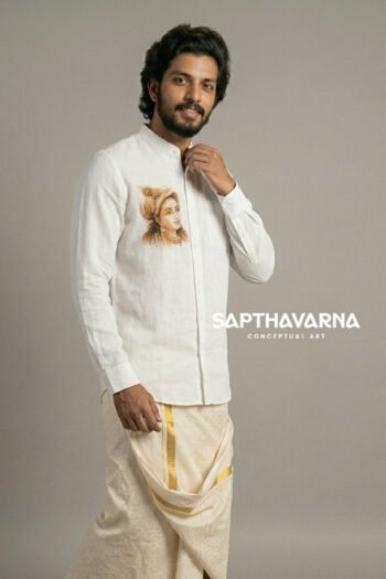 Hand-Painted Macaw Men’s Shirt — White Linen Cotton (Limited Edition) ₹3,350.00