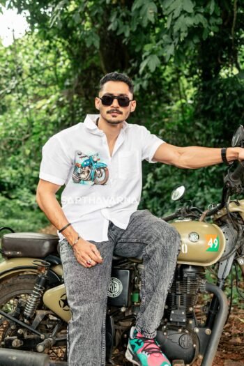 This premium shirt showcases a delicate handpainted violet floral motif, crafted in a dreamy watercolour style. Each petal is painted with graceful brushstrokes, blending shades of purple, lavender, and green to create a natural, artistic effect. The breathable, high-quality fabric ensures comfort, while the floral artwork adds a touch of elegance to your wardrobe. Perfect for casual outings, festive gatherings, or as a special gift, this shirt is a one-of-a-kind piece where fashion meets fine art.