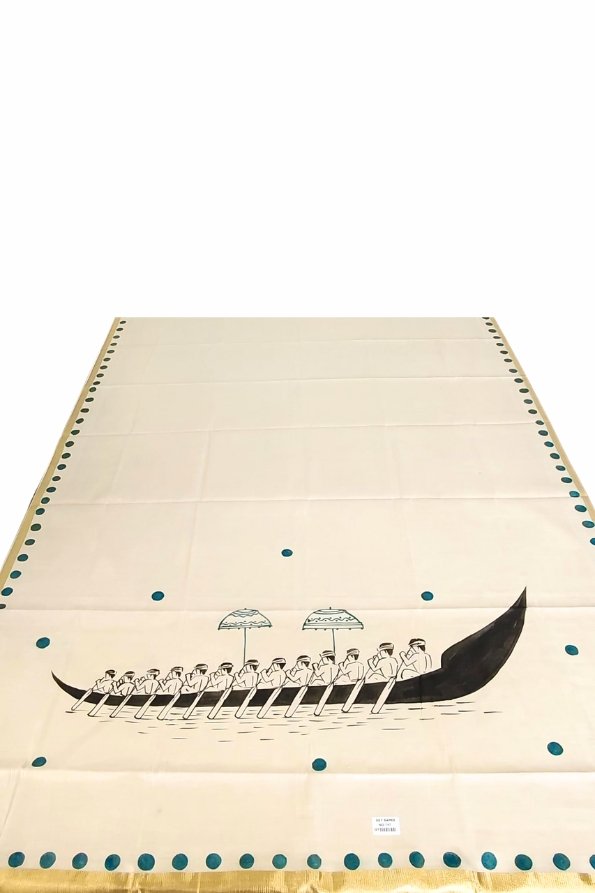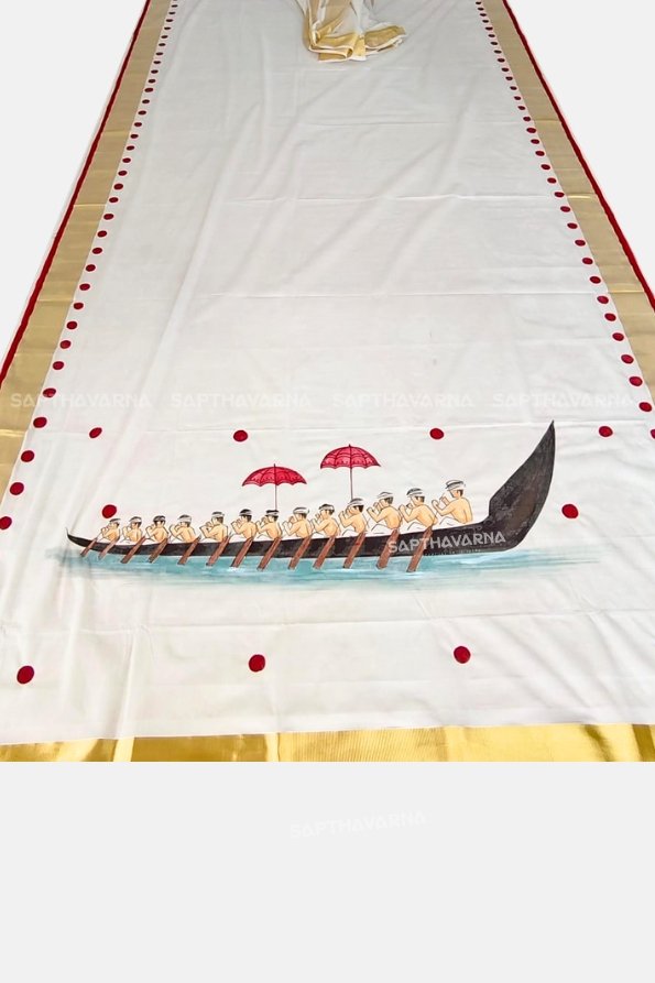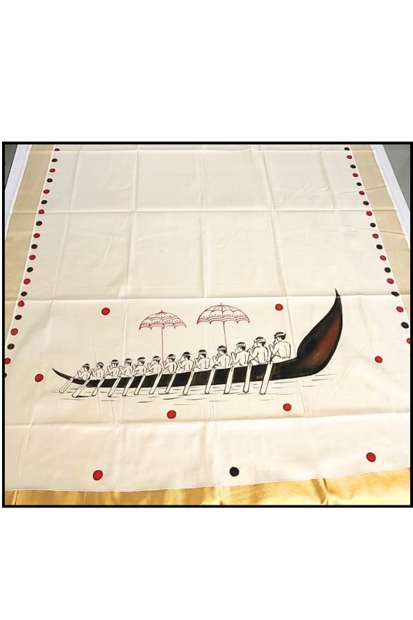 Onam Special Hand-Painted Vallamkali Saree with Blouse